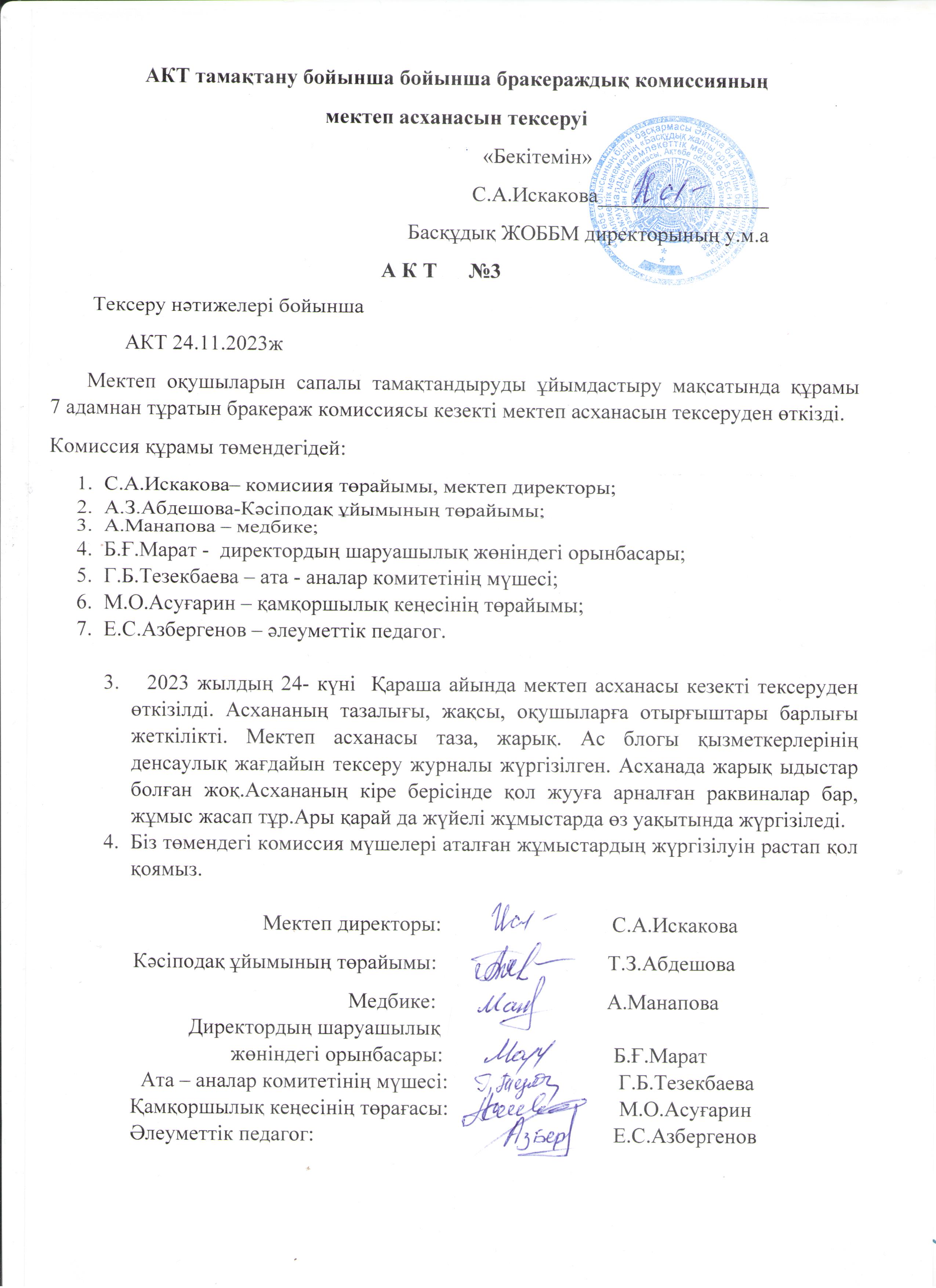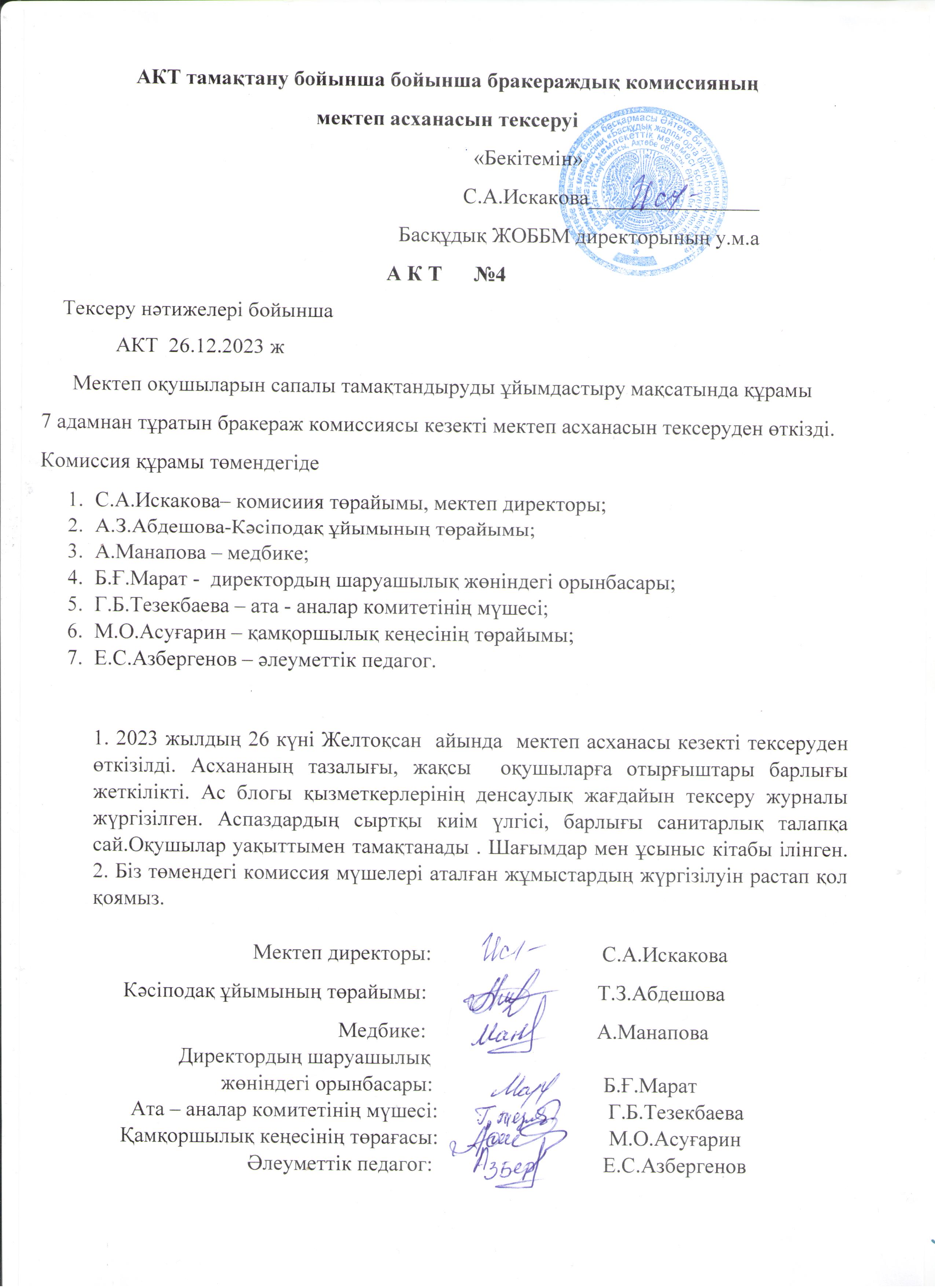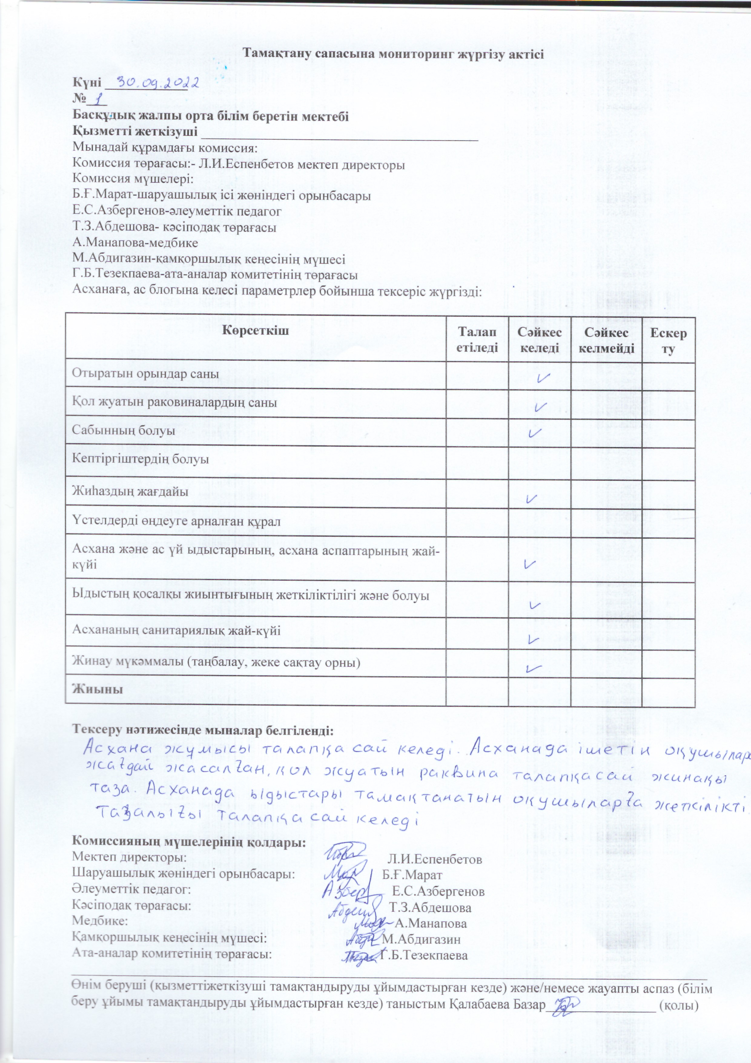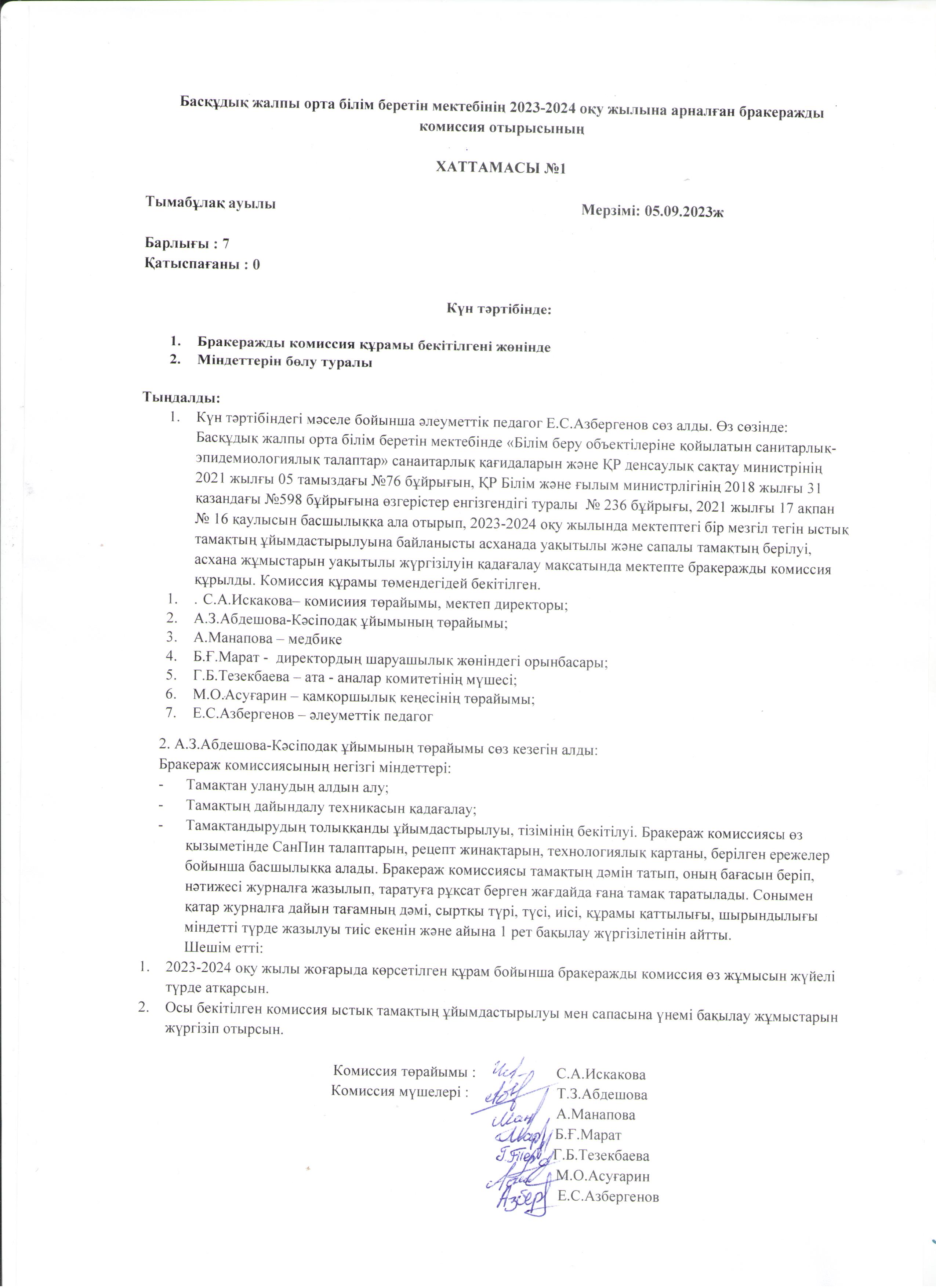 | 8 | 1 Бракераж ком ыстық тамақ |