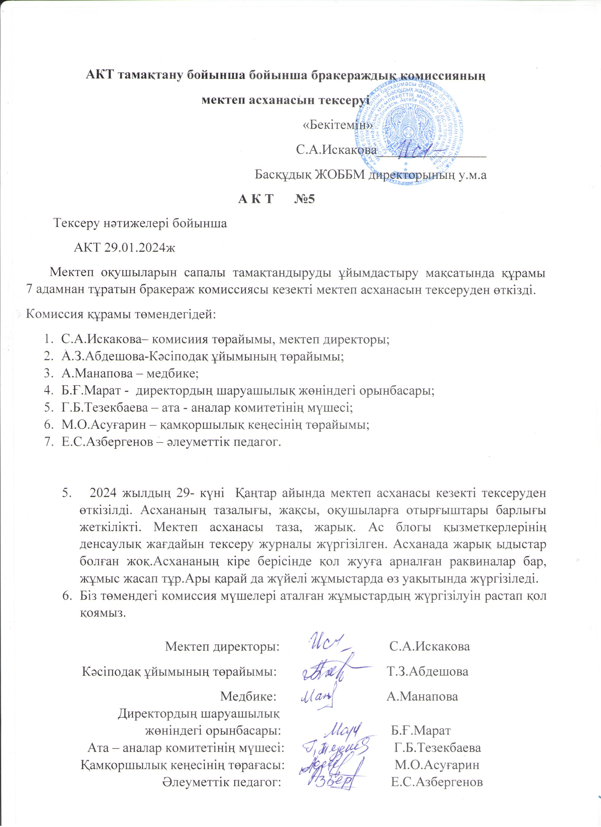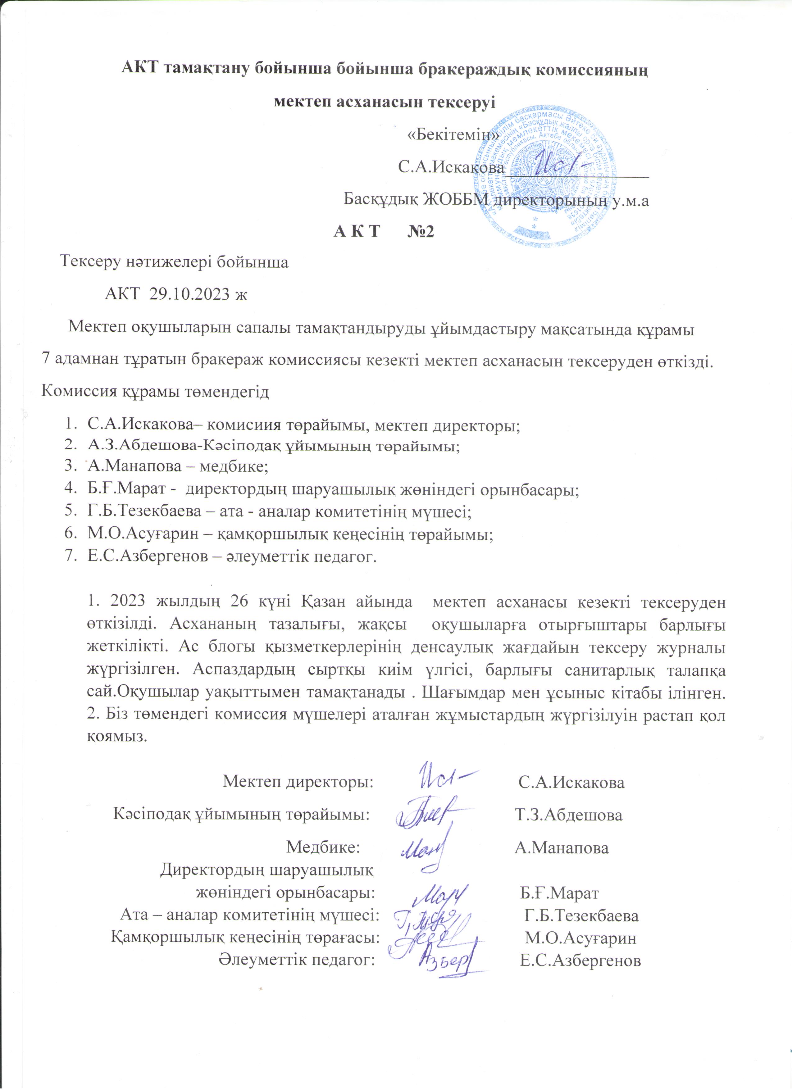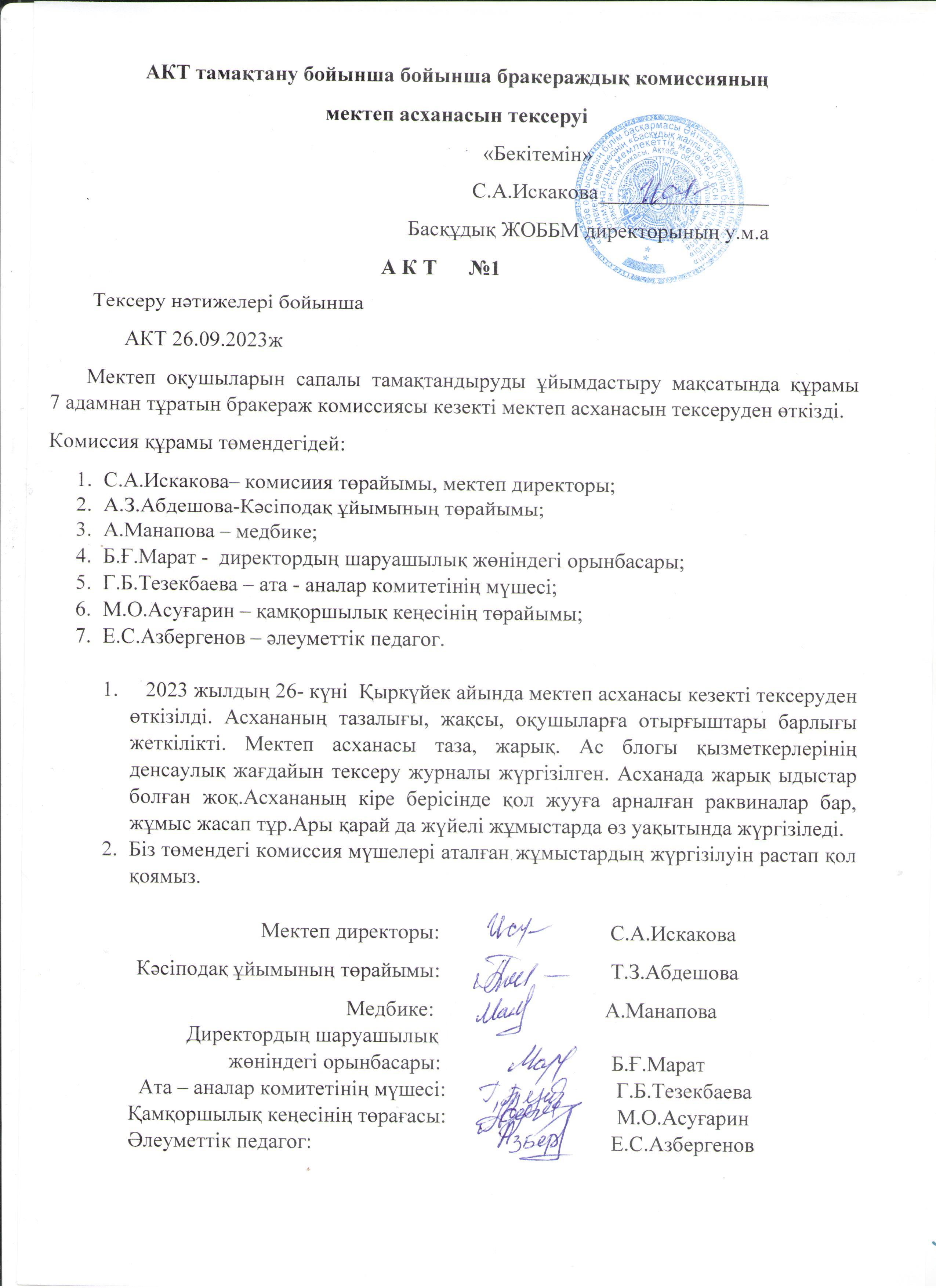 | 9 | Бракераждық комиссия бұйрығы, актісі | |